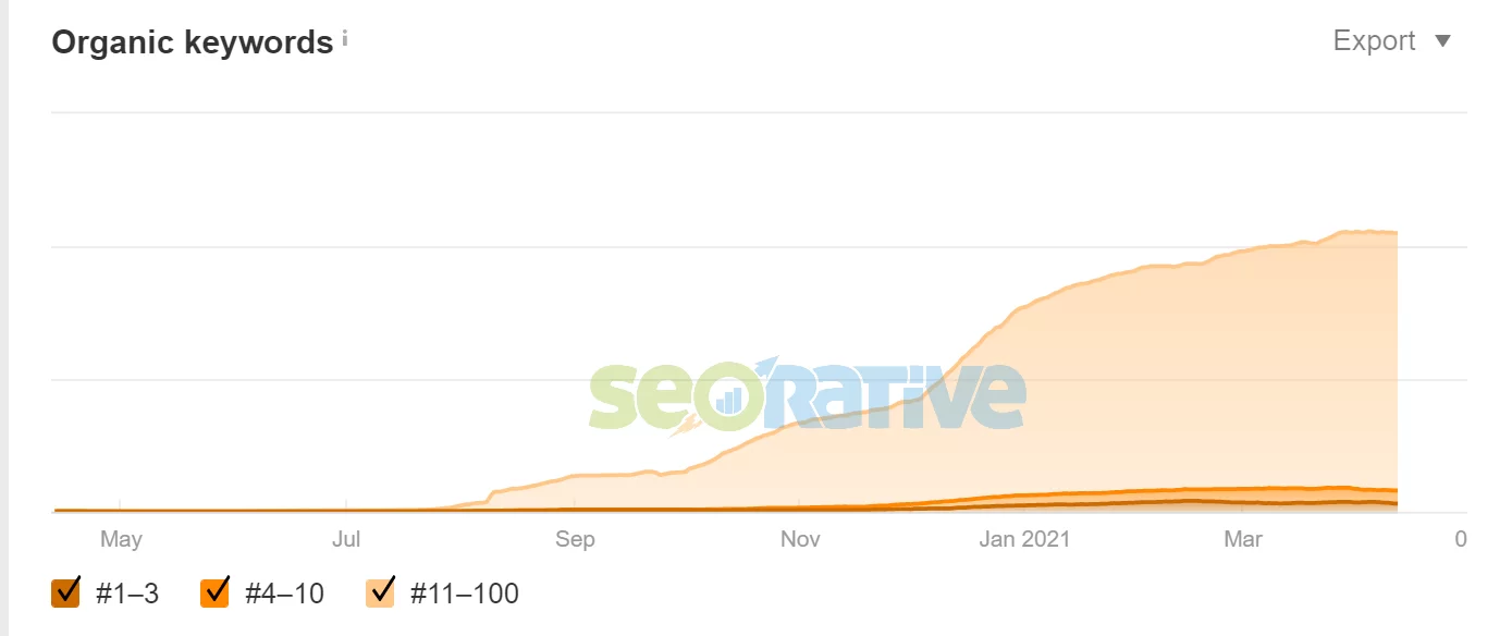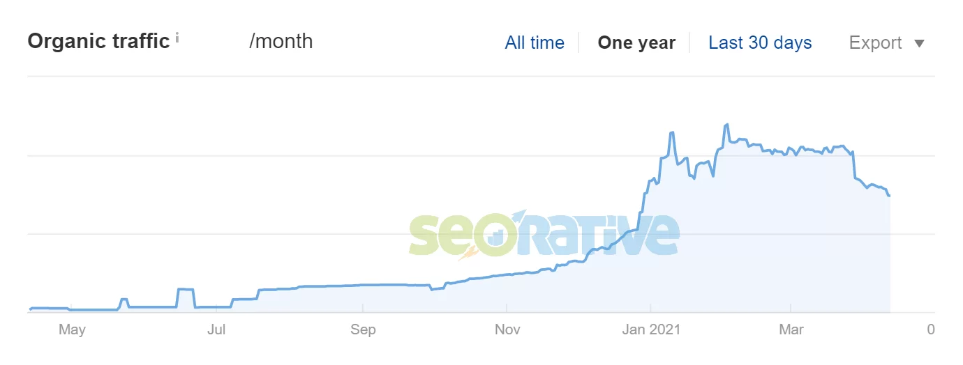 - While it had no organic traffic for commercial keywords at the beginning of our service period, at the end of our service period over 5000 regular monthly traffic was provided.